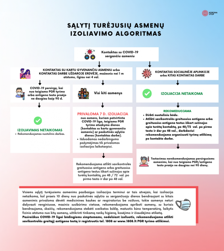 Galimai imunitetą COVID-19 turinčių asmenų izoliacijos algoritmas