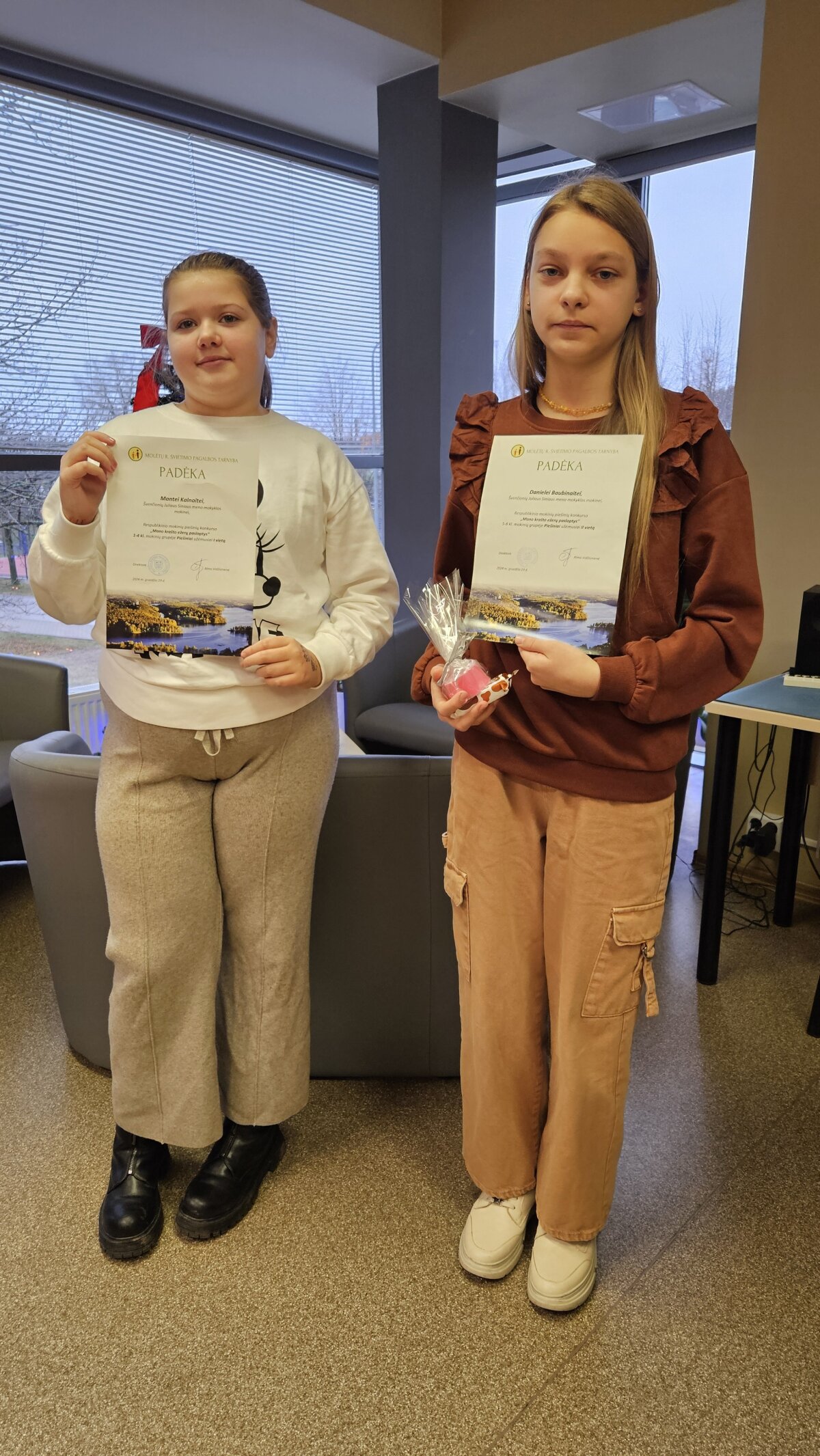 įvertinti, o mokinės apdovanotos diplomais ir dovanomis. Didžiuojuosi ir sveikinu Mantę Kalnaitę iškovojusią I-ąją vietą ir Danielę Baubinaitę iškovojusią II-ąją vietą. Po